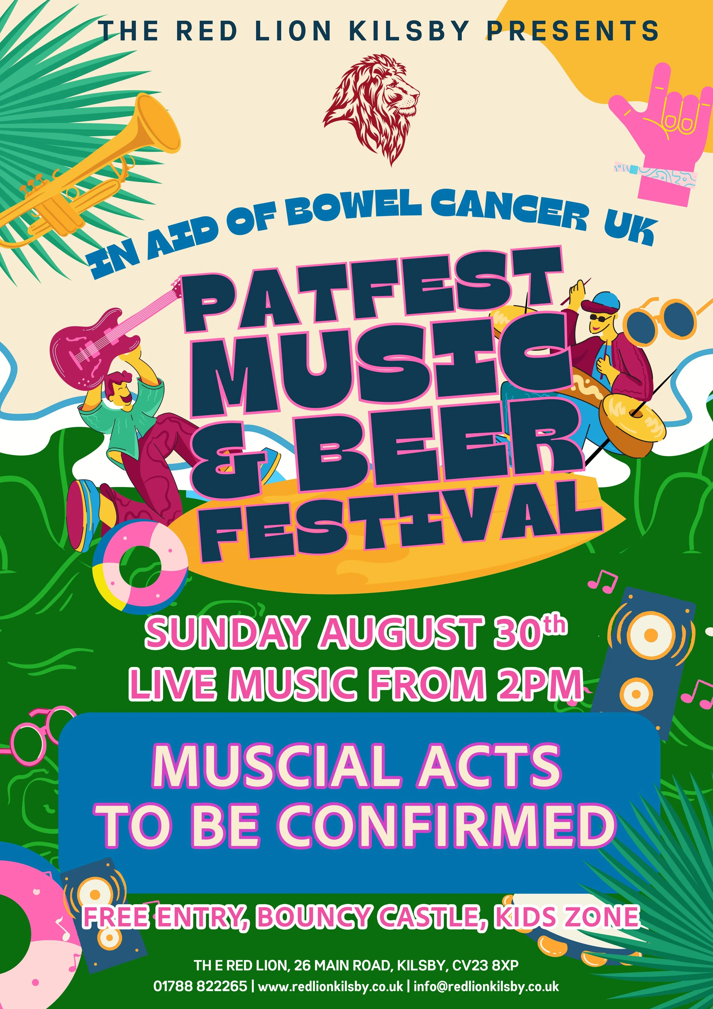 PatFest Music Festival In Aid of Bowel Cancer UK - Sunday August 30th from 2pm