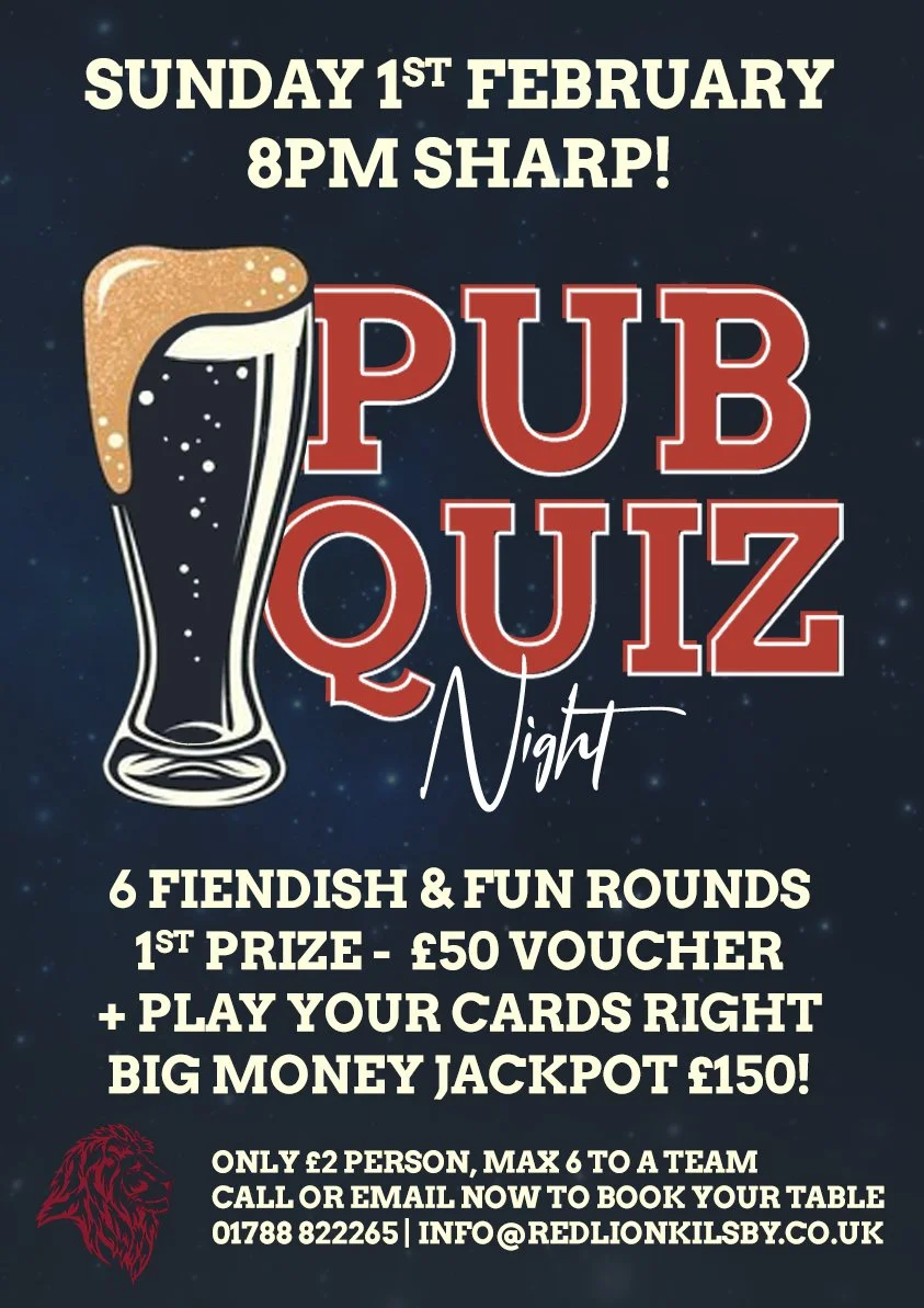 Pub Quiz - Sunday, March 1st 2026 from 8pm Sharp